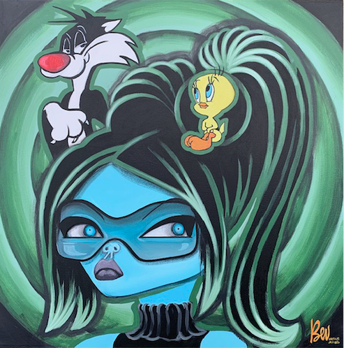 I Did Taw A Puddy Tat is a 24 in. x 24 in. Bev Hogue original painting