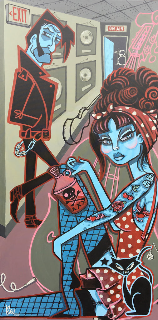 Rockabilly Blues is a 36 in x 72 in original painting by Bev Hogue. It is the latest in in the artist's large-format acrylic on canvas series.