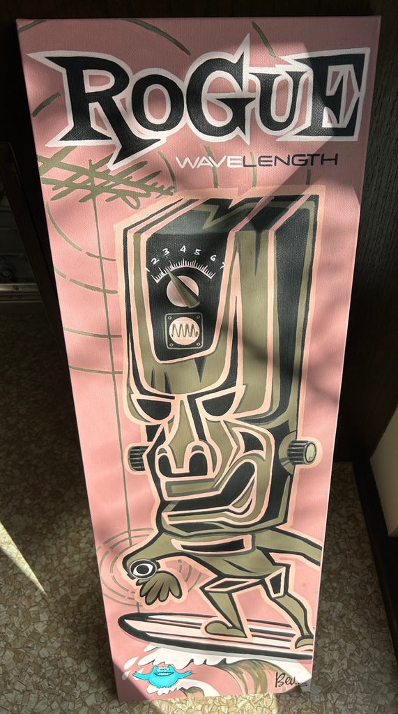 Rogue Wavelength is a 12 in. x 36 in. original painting by Beluxe artist Bev Hogue. It is part of the artist's Animal Crackers series